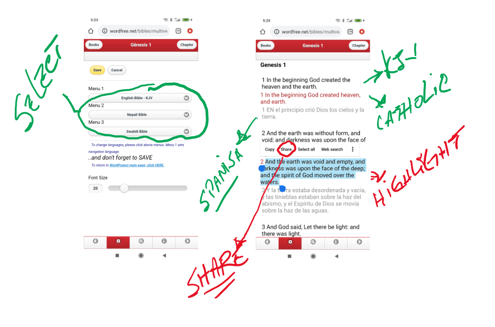 Many, even in our own team, do not realize the variety of tools we have available in our sites to read and study and understand God’s Word. One of the features that is often overlooked is the multiple language online APP, which displays 2 or 3 languages simultaneously. How is this useful? Actually, very useful if you speak more than one language but also just to compare 2 versions of the Bible, or the Greek and Latin versions with our own version. Also, to show or share a verse with a person in a language you do not know. Many are the uses for this tool, which we have spent a lot of ours developing and updating. The link is here: