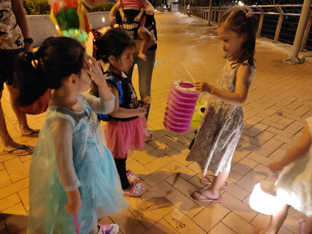 These days who celebrating Middle Autumn Festival, one of the great celebrations in Chinese tradition. The lanterns on the night of the full moon are usually great fun for the children (and adults too). We went out with the grandchildren Bel and Ro, and we experienced a surprise storm… Nevertheless, it was still fun.
