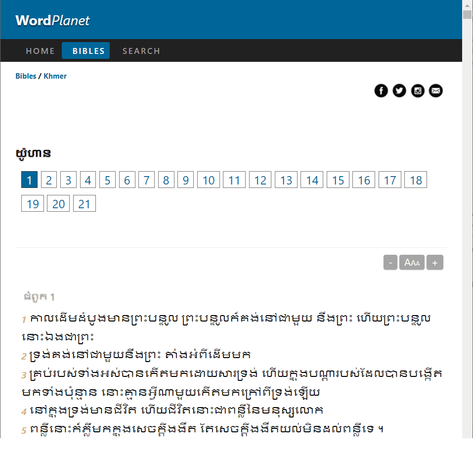 Although we place less emphasis on Wordplanet.org, the “other site” that offers the Word but in a slightly different format – all chapters in one book on the same page, scrolling down – there are users out there who rather have that and keep asking for updates and new languages. Recently we were asked to include Khmer, the language of Cambodia, on that site. It took many hours to produce but we finally complied and now for all Khmer speakers, we have it on Wordplanet. See it here: