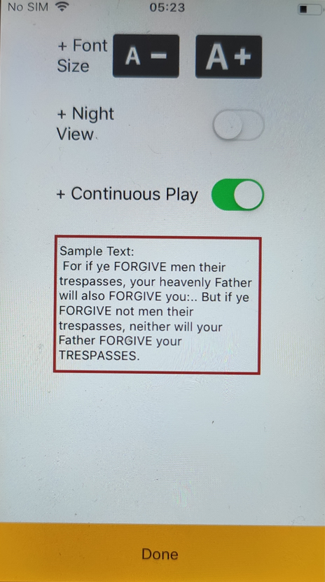 I am helping my Japanese friend who has very limited eyesight to be able to listen to and see the Bible on her iPad. She is thrilled it is possible. However she still cannot see the WordProject font on her iPad — it doesn’t increase in size enough. The previous android app allows the font to be increased unlimitedly large. This stays large between chapters and so it only needs to be increased once. This is perfect for my friend. The problem is she owns an iPad and on iPad, the largest size of font is still much too small for her to see. The online web-version allows enlarging of the font but this enlargement needs to be repeated for every chapter every time. — and the little menu item to increase the font size is light color and tiny – my friend cannot see it on the screen at all so will not be able to read her Bible by herself with the webpage version.
