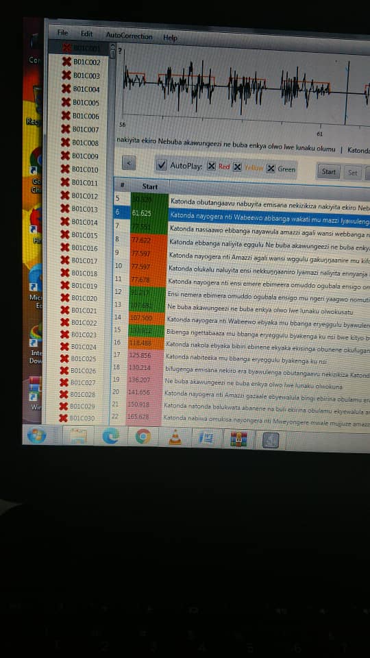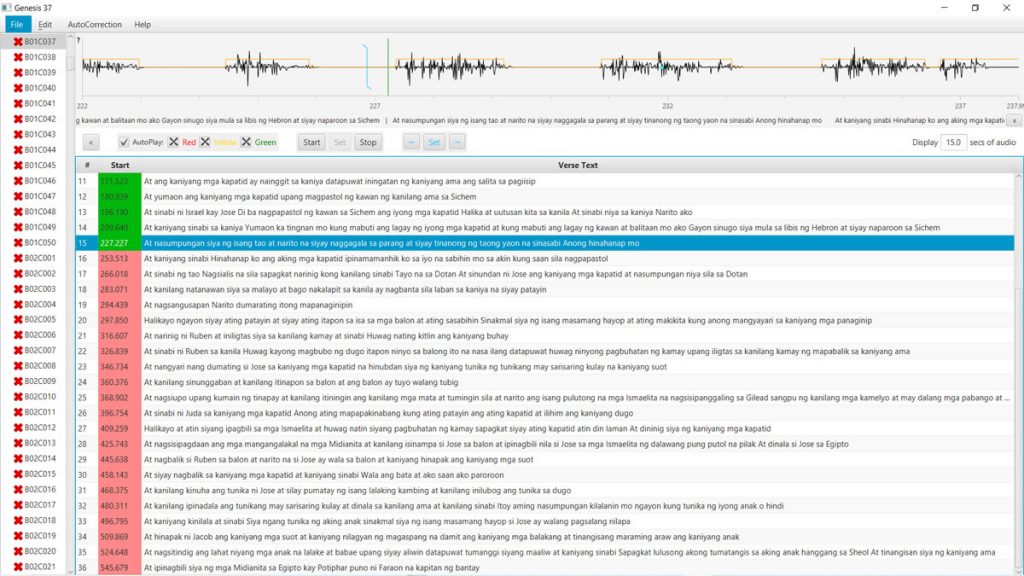 The WP Plus app, requires that the audio and text be synchronized, through a process we call indexing. We use a special program developed for that purpose, called Audio Editor. Right now, we have brother Mathias Sserugo working on the indexing of the Luganda Bible. We are also starting the indexing of the Tagalog (Filipino) Bible. This work is time consuming because we must listen to the beginning of each verse in the Bible and adjust the respective timecode using the special Audio Editor program.
