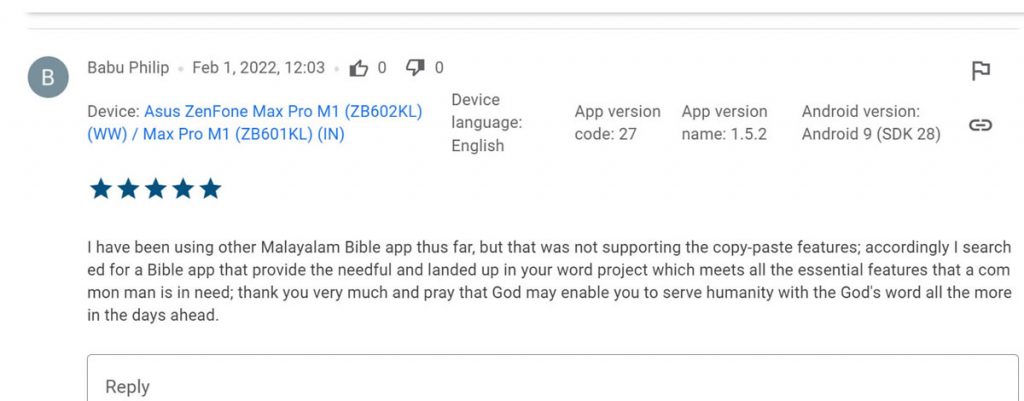 The comments from users are mostly encouraging and there are other people out there who wish to take active part in the great mission and wish to create their own local websites or apps. We receive several requests for permission to user the text or audio or both, which is general is not even necessary because that is already expressed in our online disclaimers and notices.
